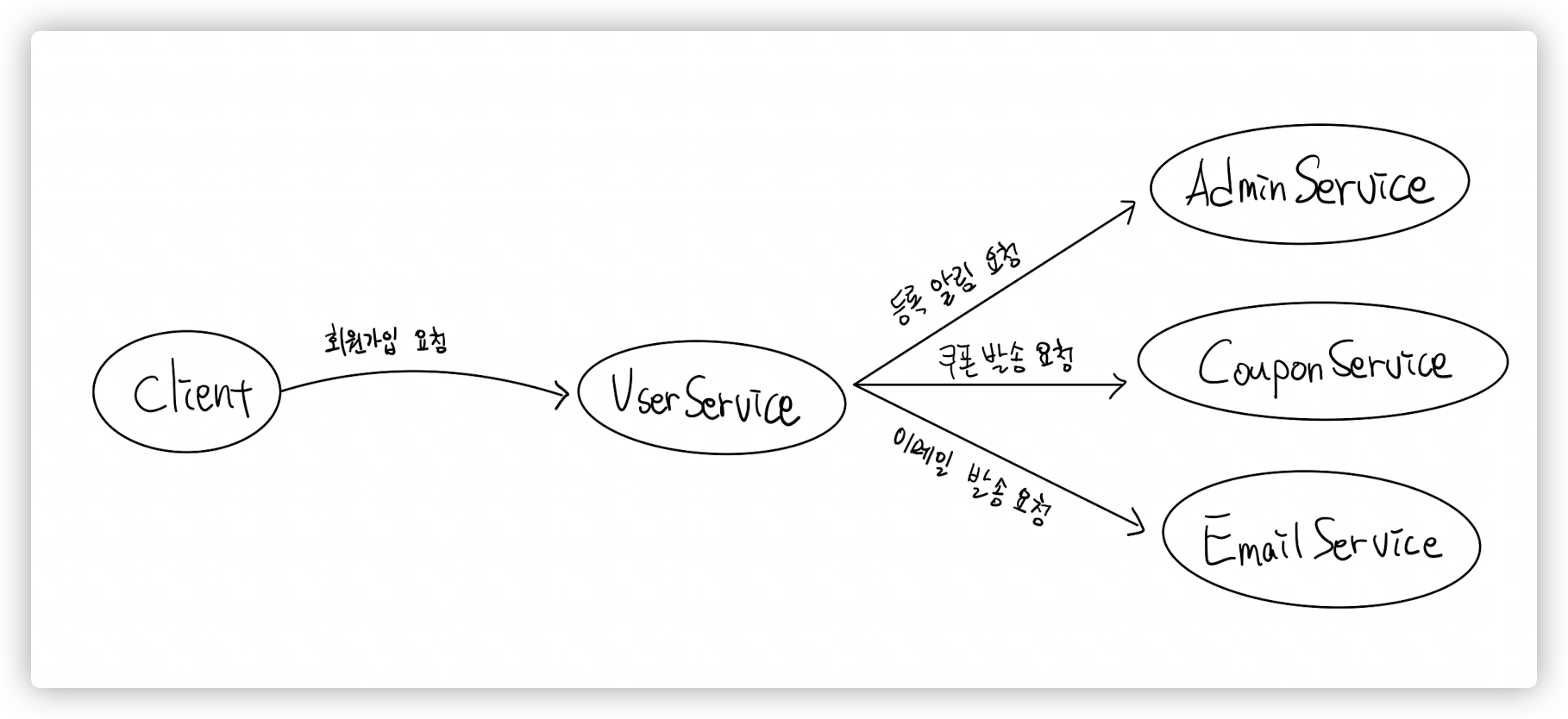위처럼 UserService가 각 서비스에 의존하여 직접 요청을 보내는 형태에서